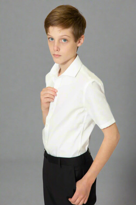 Discover our versatile collection of boys' white shirts, perfect for every occasion. From crisp, classic button-downs to comfortable, Stretch Non iron Fabrics, we offer a variety of styles designed to keep him looking smart and feeling great.