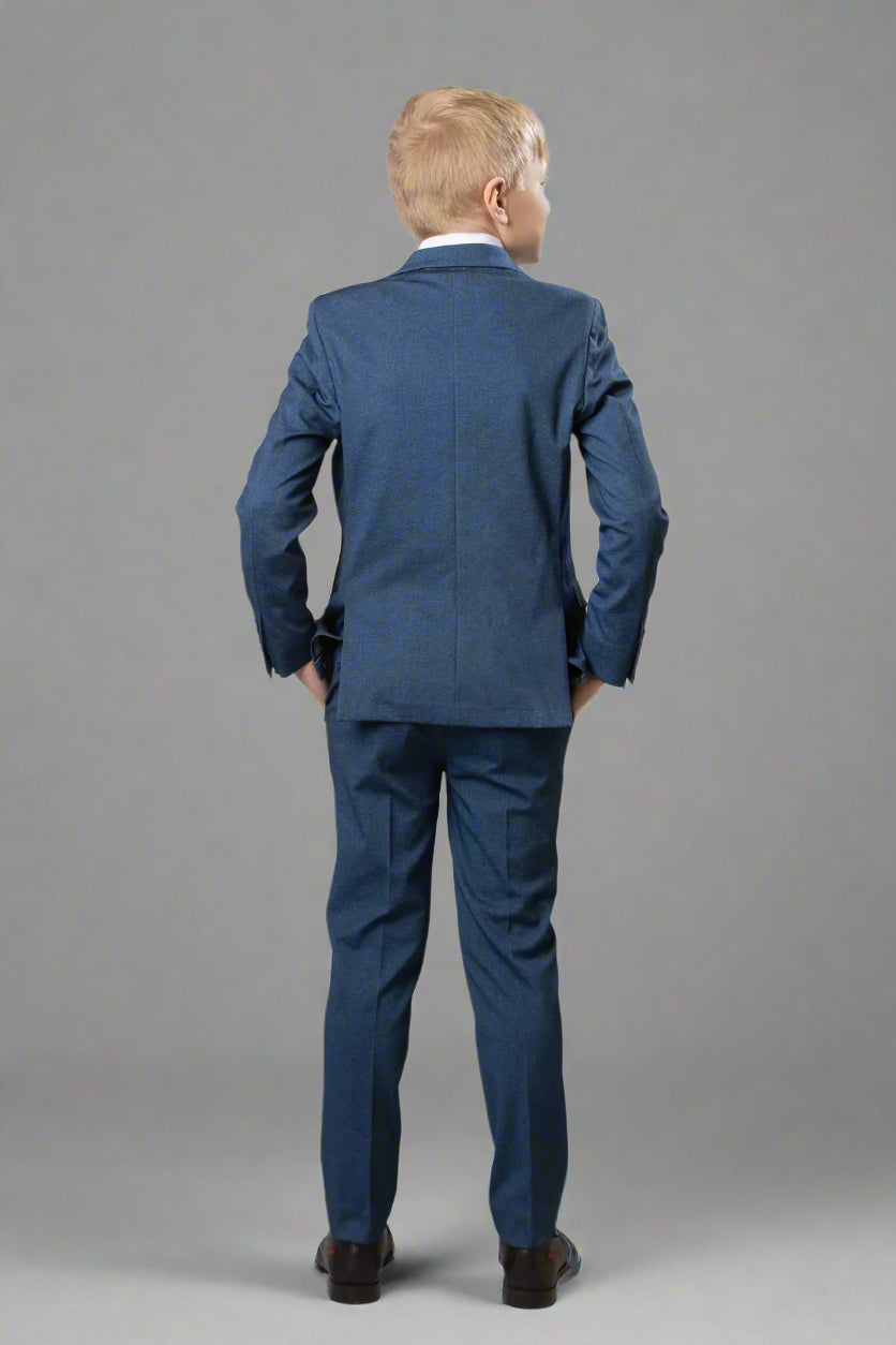 Two-Button Jacket: The T.O. boys heather blue soho stretch suit includes a sleek two-button closure, perfect for formal events and professional settings.